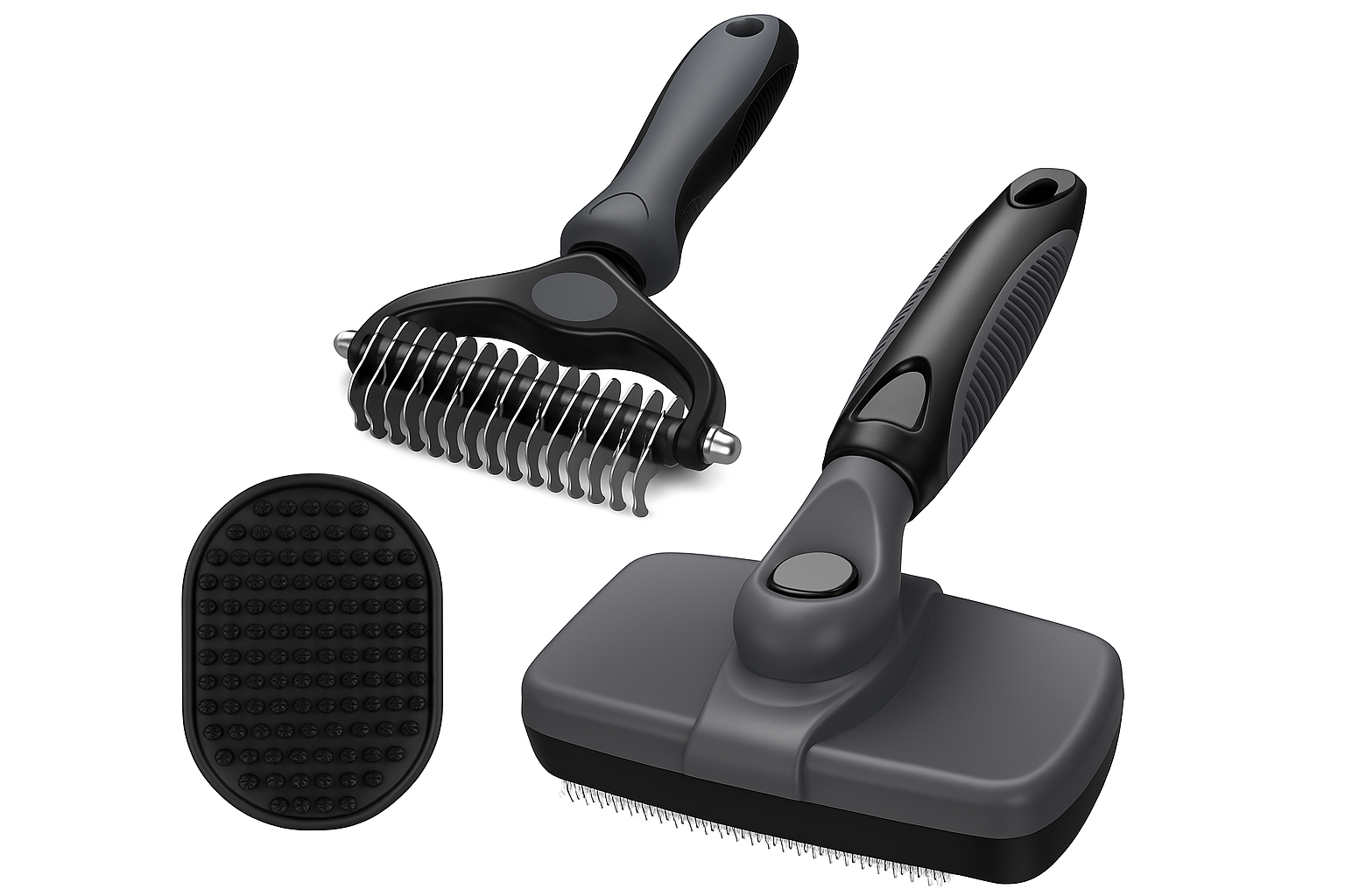 Dematting & Deshedding Rake – Double-sided design removes mats, knots, and excess fur with ease.